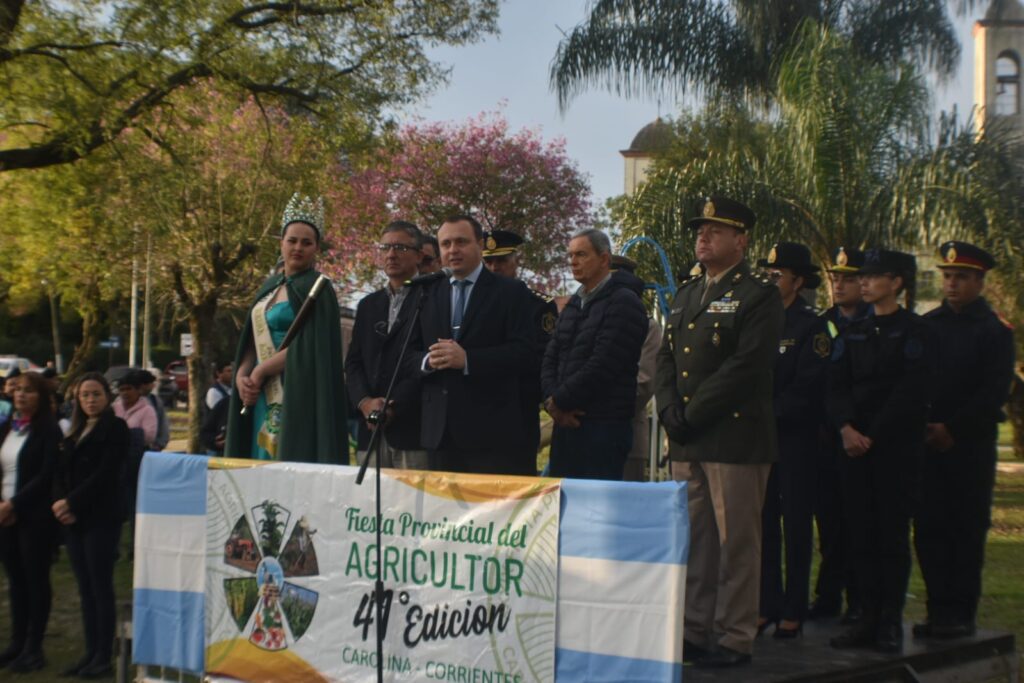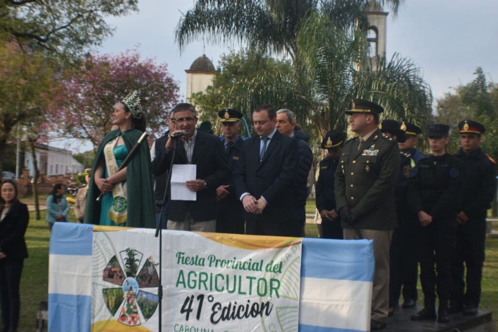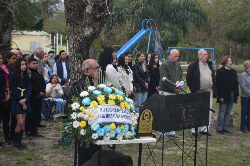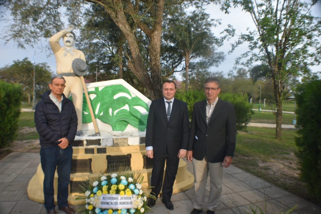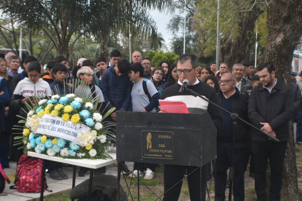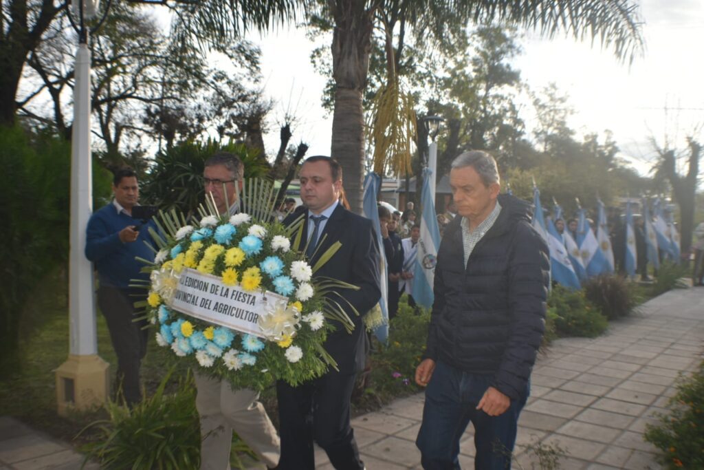 En la tarde del martes, el Intendente Elvio Sanabria, acompañado por el presidente de la Comisión de la Fiesta Provincial del Agricultor, Sr. Raúl Nicoletti, encabezó el homenaje a los agricultores en su día.