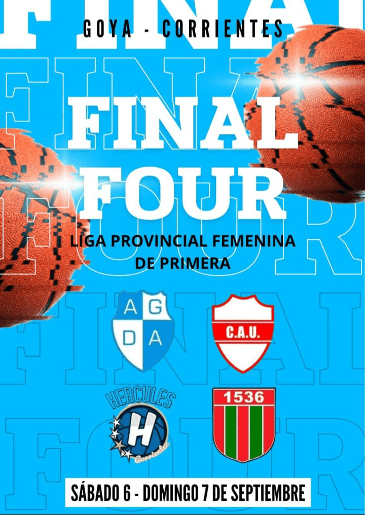 La cita está programada para este fin de semana 6 y 7 de septiembre. Los cuatro equipos protagonistas serán AGDA, Unión (ambos clubes de Goya), Hércules y 1000 Viviendas (ambos equipos de la capital correntina), quienes buscarán consagrarse en la esta edición de este Final Four del básquet femenino provincial en Goya.