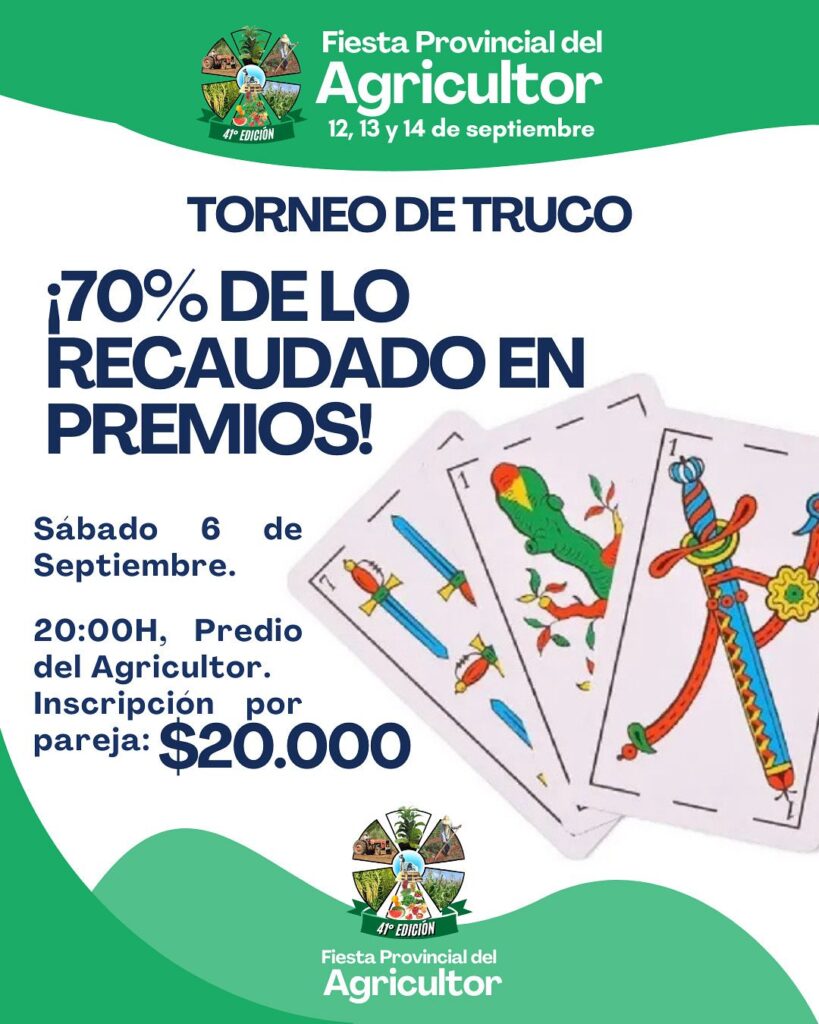 En el marco de la 41° Fiesta Provincial del Agricultor? ¡Truco!… ¡Quiero retruco! ?Vení a disfrutar, divertirte y vivir un sábado distinto con amigos